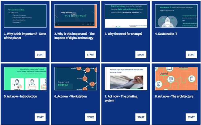 Many other learning opportunities on digital sustainability are available online, especially on topics of technology and software. For example, the Green IT e-learning modules explain how the thoughtful use of technology can help reduce carbon emissions. The content addresses both organisational strategy and individual practices, and is relevant to learners in technical and non-technical roles.