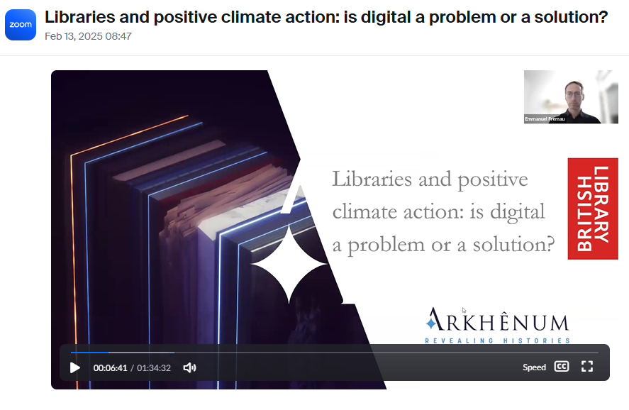 In addition, the British Library has been hosting a webinar series entitled “Libraries and positive climate action”, and in February 2025 the session was dedicated to digital - “is digital a problem or a solution?”. The webinar explored the positive and negative climate impacts of digital activities, and highlighted how libraries were rethinking their practices with sustainability in mind. A recording of this webinar is available to watch (passcode: ^25&hbz@).